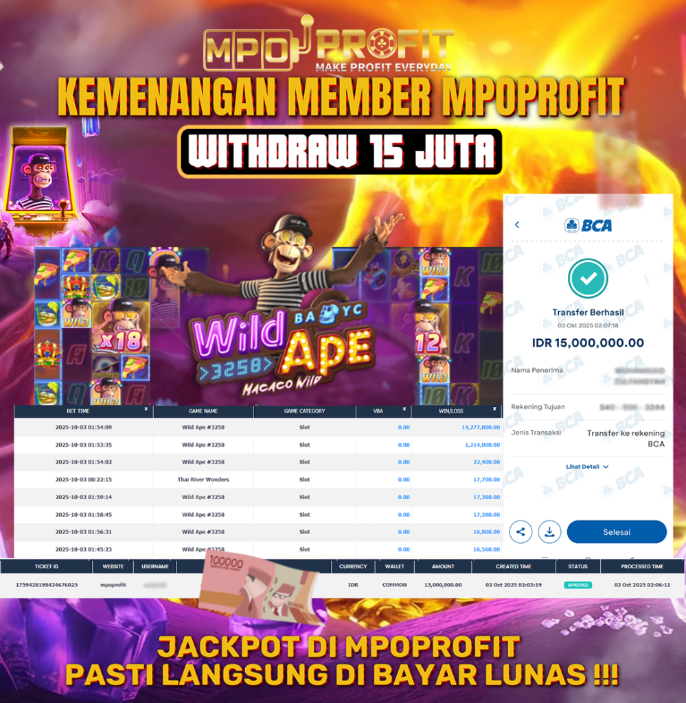 Salah satu member setia MPOPROFIT baru aja panen cuan gede dari game Wild Ape besutan PGSoft. Gak tanggung-tanggung, total kemenangan yang dikantongi tembus Rp15.000.000! Ini bukti nyata kalau menang Wild Ape MPOPROFIT itu bukan sekadar mimpi.